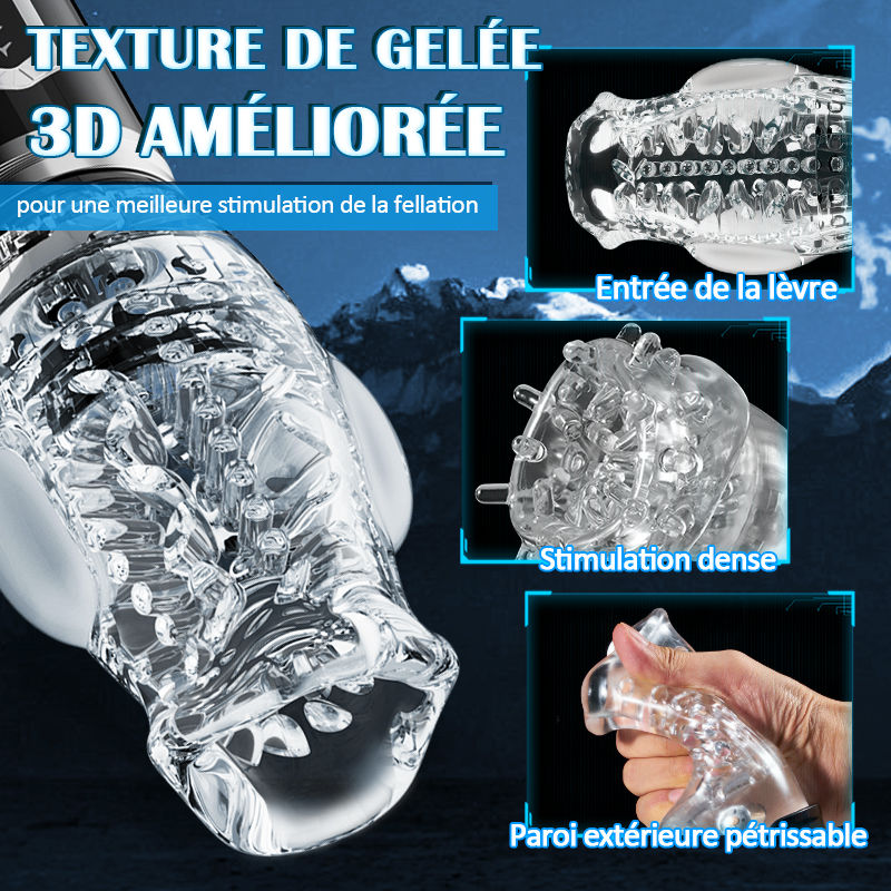 Aisia -3 en 1 Masturbateur pour sexe oral 4 aspirations 5 modes de poussée rotatifs