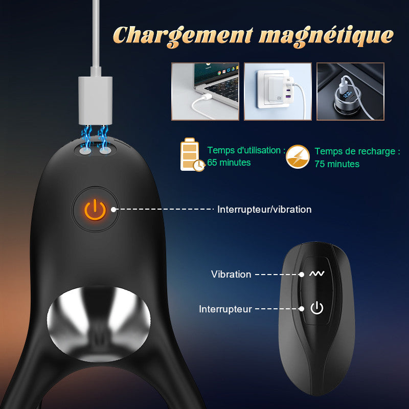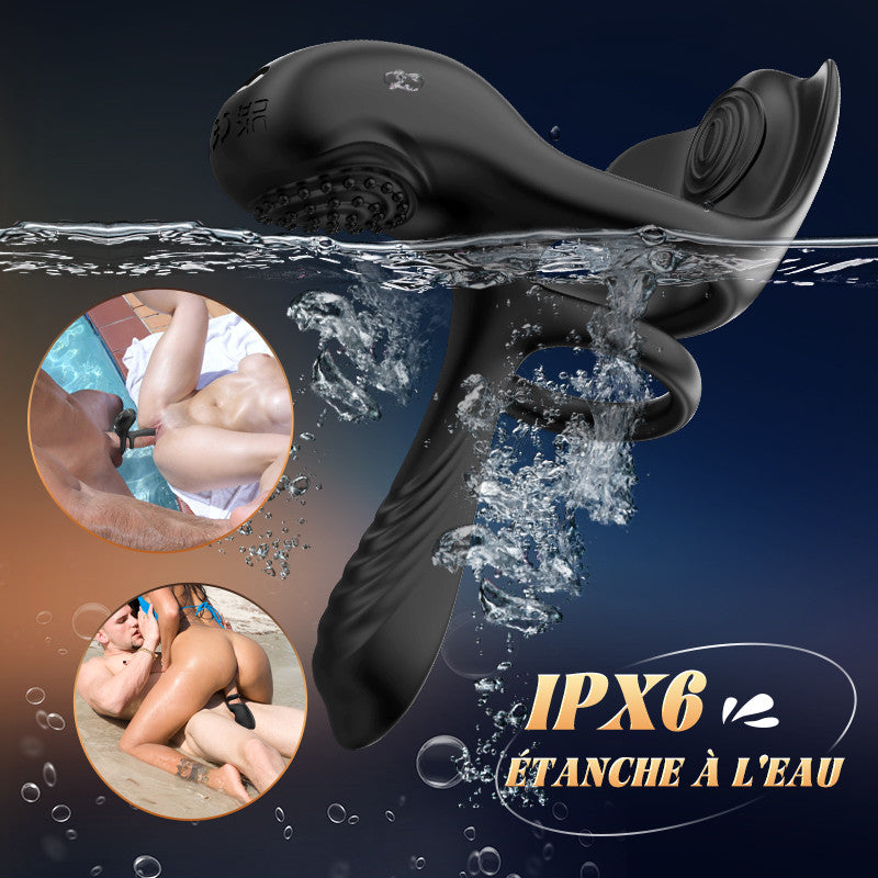 Caractéristiques : Anneau et manchon pour pénis 2 EN 1, Triple moteurs, Entraînement périnéal, Deux anneaux