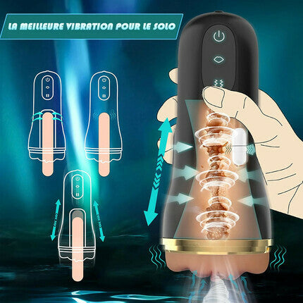 Double ouverture 7 vibrations 5 rotations et va-et-vient Masturbateur portable de sexe oral