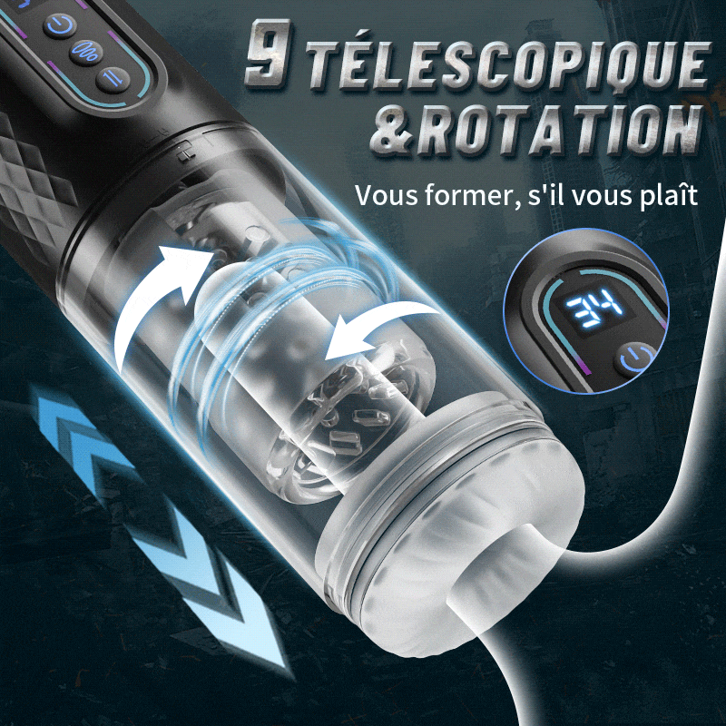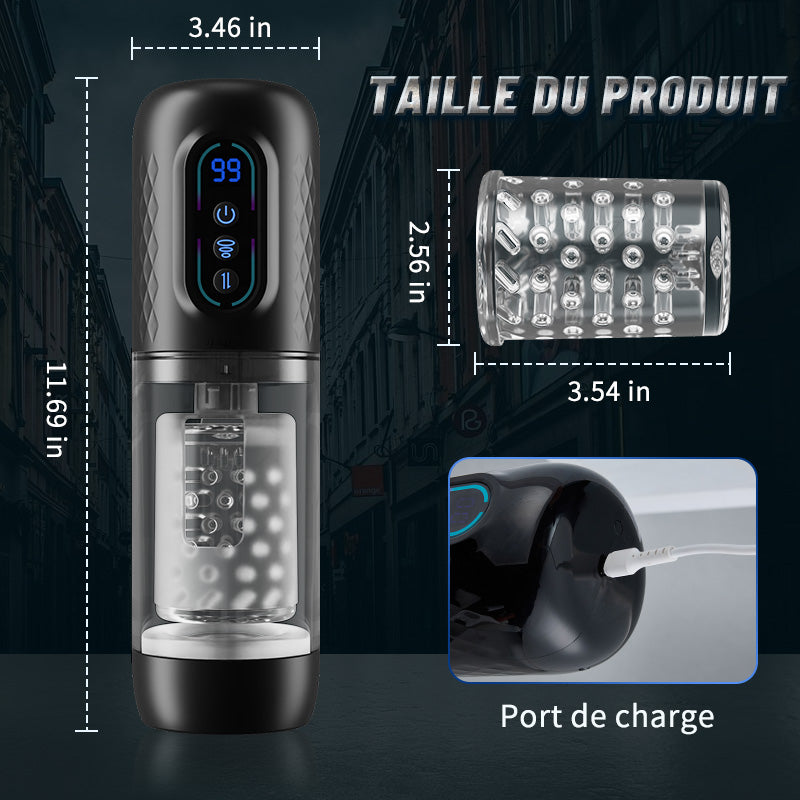 Ce masturbateur pour hommes n'offre pas seulement une expérience ordinaire - oh non. Avec ses neuf modes de vibration, de rotation et d'aspiration puissants, il est une véritable centrale de plaisir. Que tu sois d'humeur pour un coup de pied lent ou une chevauchée sauvage, il a tout ce dont tu as besoin.