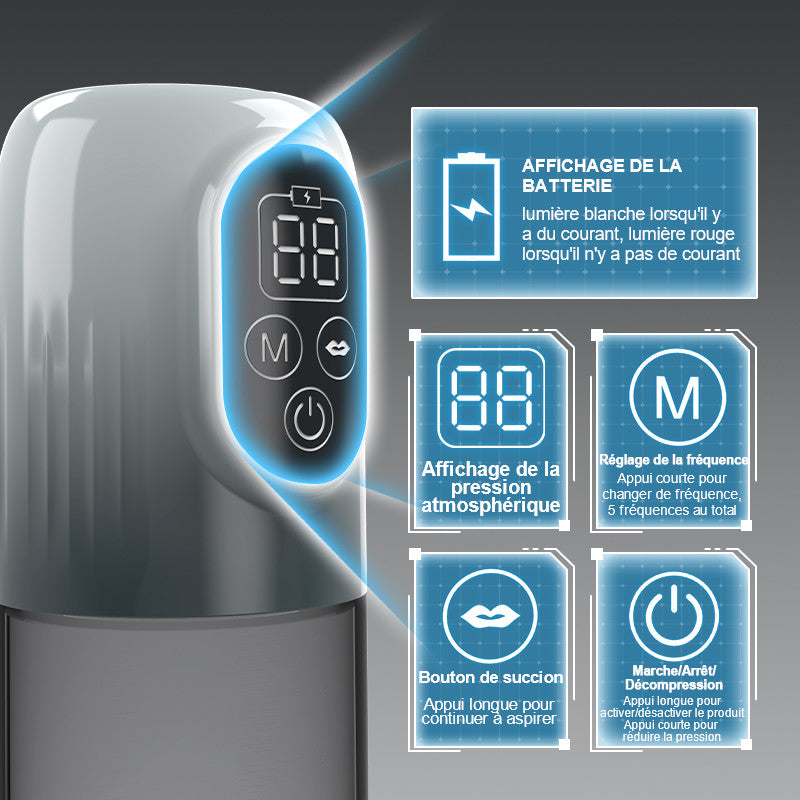 En essayant les 5 modes d'aspiration et les 6 réglages d'entraînement, vous sentirez les changements progressifs des niveaux de pression, spécialement conçus pour développer l'endurance et la force. À chaque séance, la pression à vide contrôlée améliore la circulation sanguine, ce qui conduit progressivement à des érections plus fortes et, avec le temps, à une plus grande endurance. L'affichage LED clair vous informe de la pression actuelle et si vous observez les mesures du cylindre, vous serez enthousiasmé par les résultats visuels. Cette combinaison de stimulation à base d'eau et d'entraînement à la pression permet non seulement de se détendre, mais aussi d'acquérir de la confiance en soi pour de futures rencontres intimes.