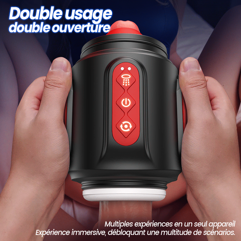 - "Conception deux-en-un" : le couvercle est détachable et peut également être utilisé comme masturbateur traversant.