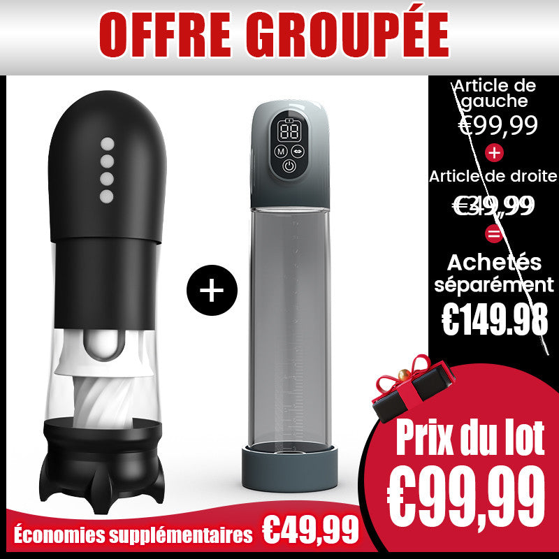 Vous hésitez encore à cause des coûts élevés pour des fonctionnalités variées ? Ne vous inquiétez pas ! Nous vous présentons notre pack exclusif à double produit ! Optez dès maintenant pour notre offre combinée limitée de Masturbateur + Agrandisseur – pour seulement 99,99 €, ramenez chez vous ces deux produits d'une valeur totale de 149,98 € et économisez directement 49,99 € ! Profitez d'un double plaisir et d'expériences intenses à un prix incroyablement bas !